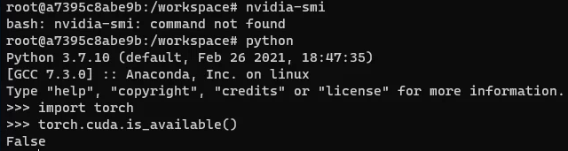 | docker run -it --name 'deep_2' pytorch/pytorch:1.9.0-cuda10.2-cudnn7-devel |