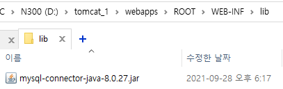 아까 위에서 ROOT폴더를 만들었죠? 그 안에 WEB-INF/lib폴더를 만든 다음에 다운받은 jdbc 드라이버를 넣어줍니다.