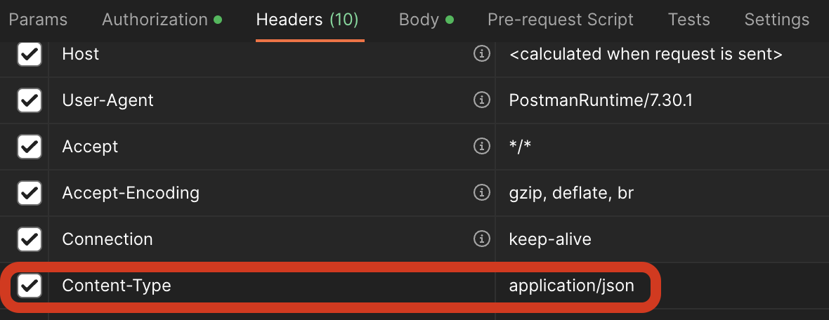 header에 Content-Type: "application/json" 을 추가하면 된다.