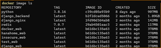 위 명령어를 입력하면 다운받은 이미지를 확인할 수 있습니다.