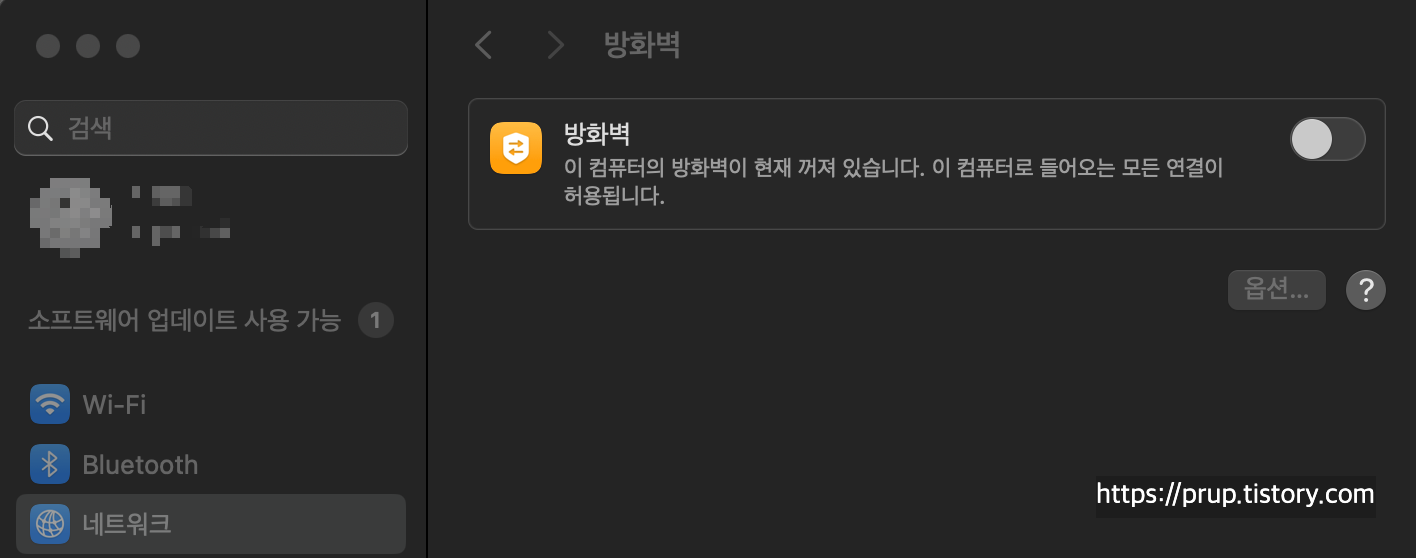 위와 같은 메시지를 확인할 수 있는데, 맥 설정 - 네트워크 - 방화벽을 비활성 했더니 정상적으로 연결되었다.